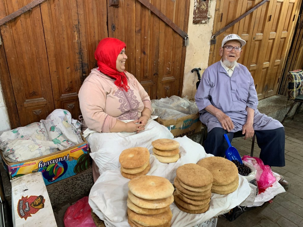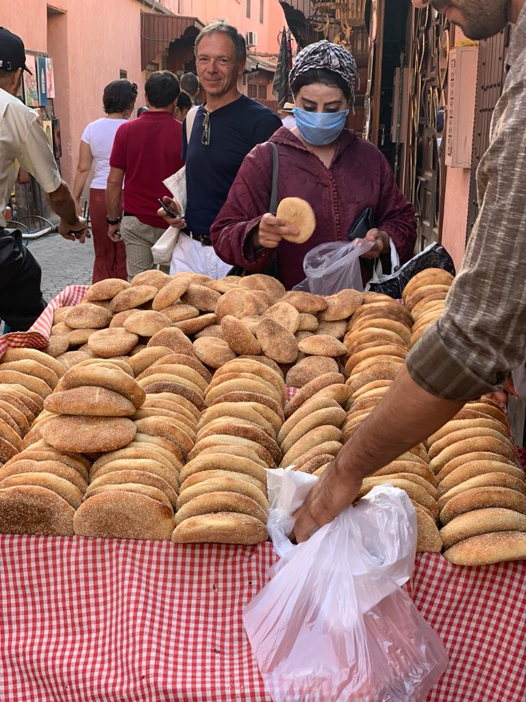 Tajines are accompanied by bread, often used as a spoon, which is the Moroccan staple food, consumed in large quantities at every meal and sold in dozens of stands, and at all hours of the day. As we wandered through towns and villages, we had trouble resisting the temptation of stopping at every street corner to eat the delicious Moroccan bread!