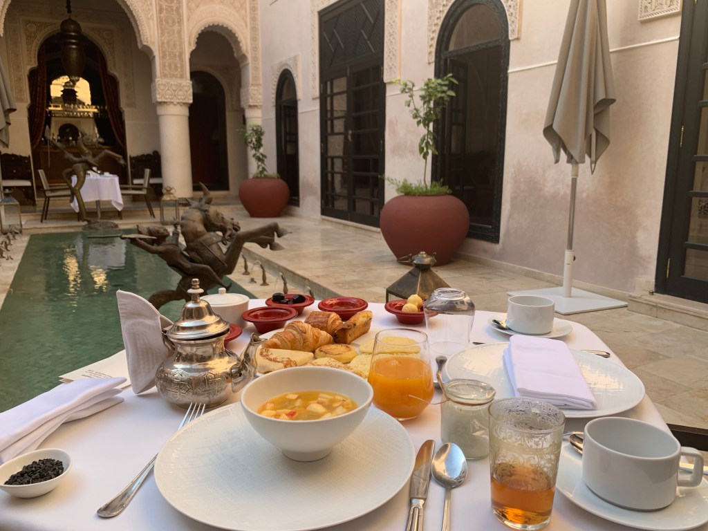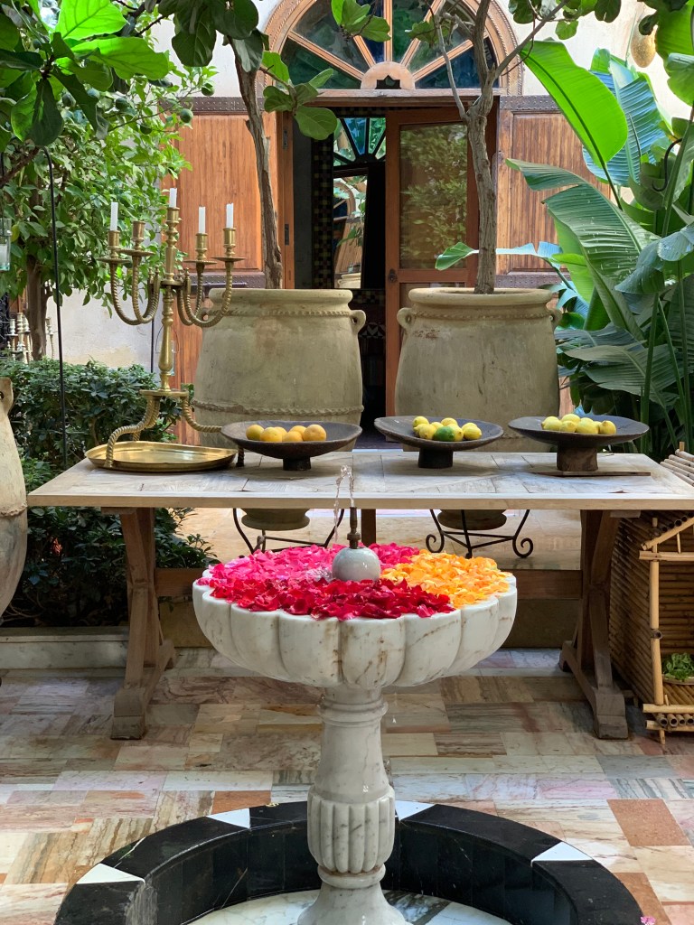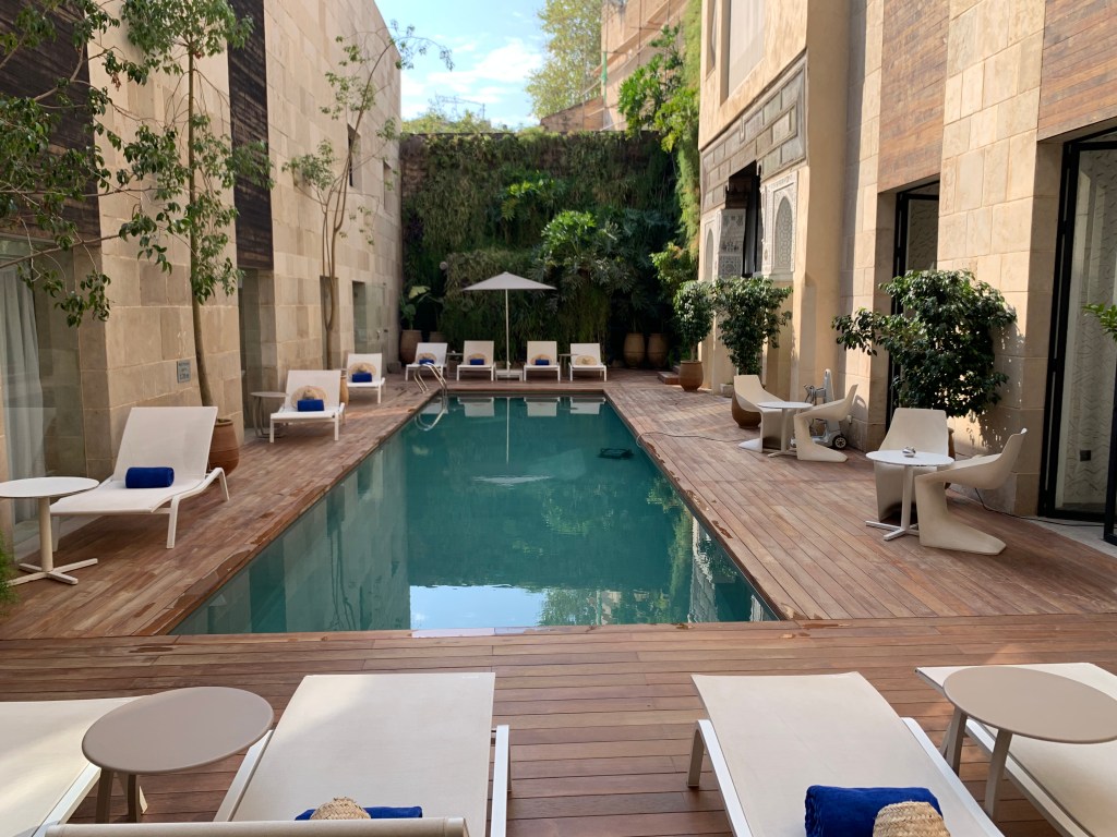 In Marrakesh we stayed at Riad El Fenn. It’s wonderfull located, just at the edge of the medina and it’s unquestionably a very beautiful hotel. You can walk everywhere in the Medina and you can equally be very fast outside of it, if you wish to walk to the Royal Mansour or La Mamounia, to have lunch, tea or dinner. It’s also the hip place in town and the staff are really cool. The afternoon teas are memorable featuring delicious cakes and pastries. The rooftop is atmospheric and bursts with energy and life especially in the evenings.