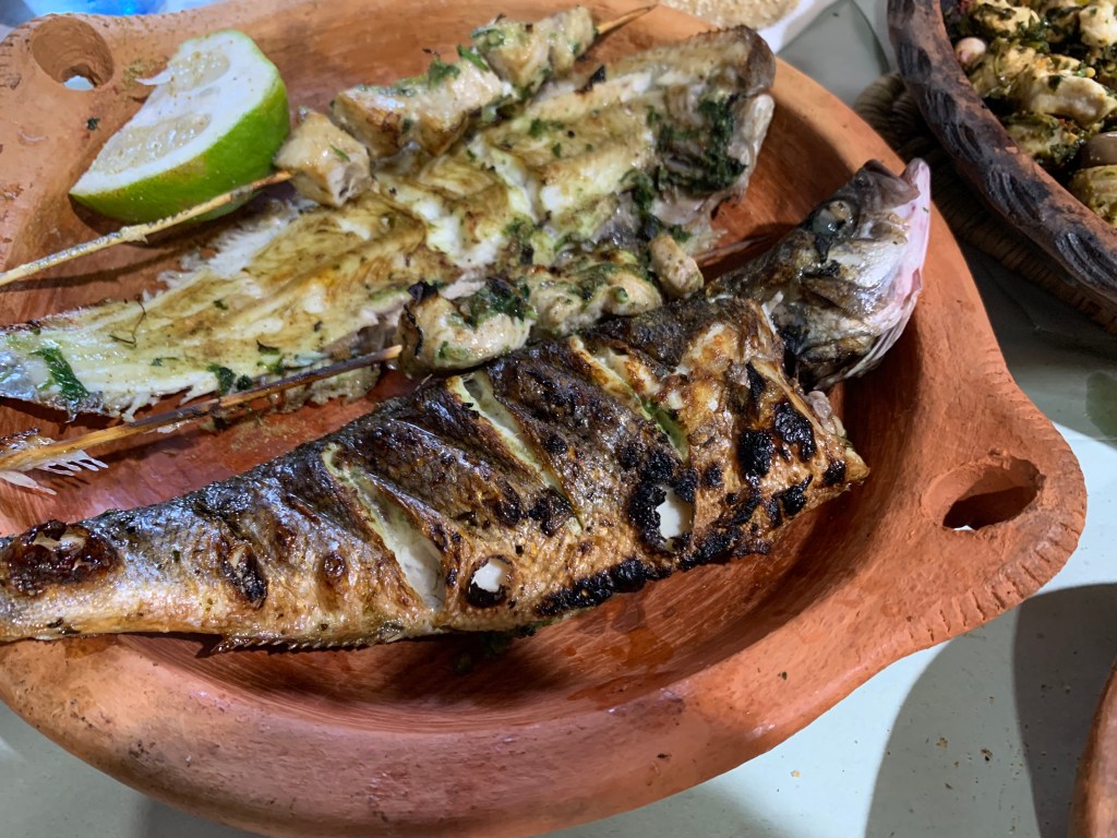 Our outstanding fish meal at Saveur de Poisson, a hole-in-the-wall restaurant in Tangier.