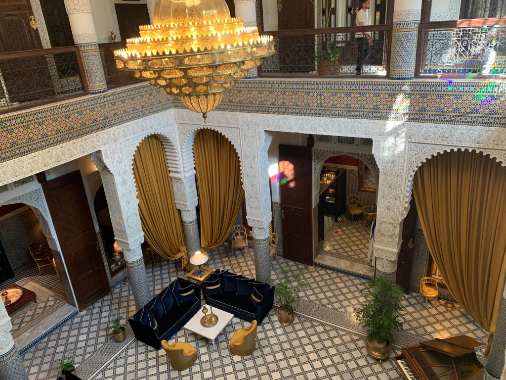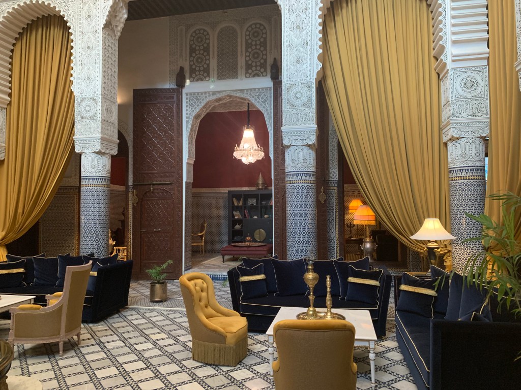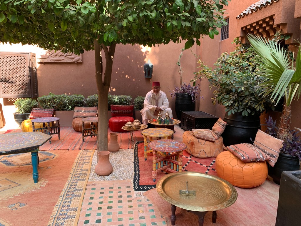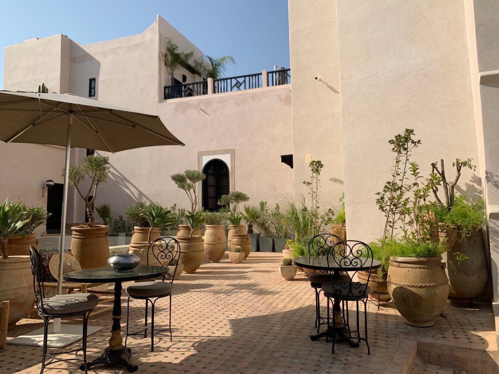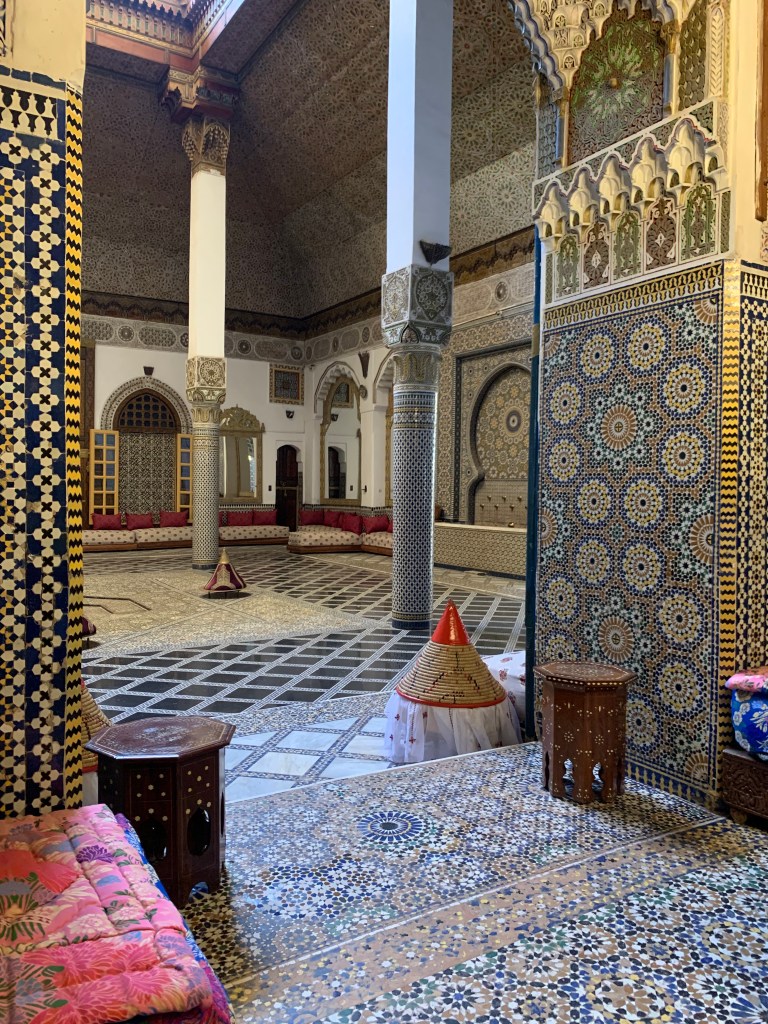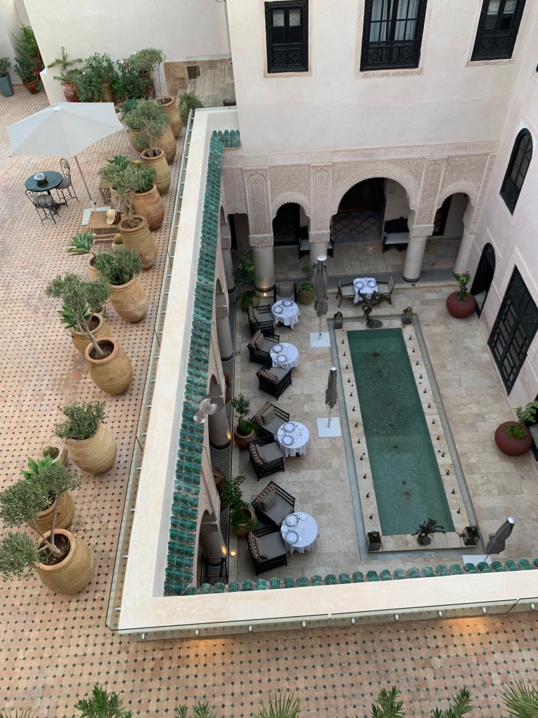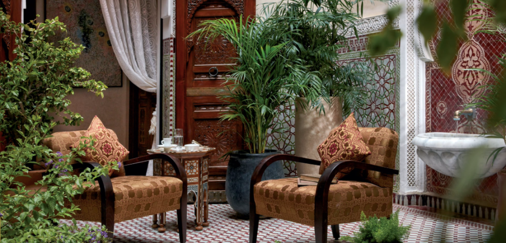 The intricate and beautiful geometric figures that are omnipresent in Moroccan art, add to the sense of serenity of the interior courtyards and buildings.