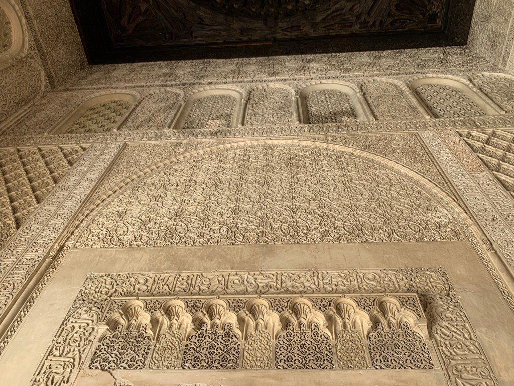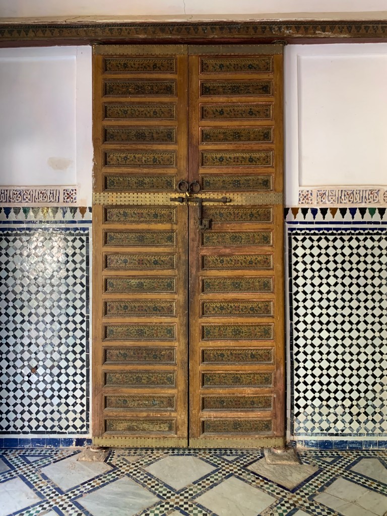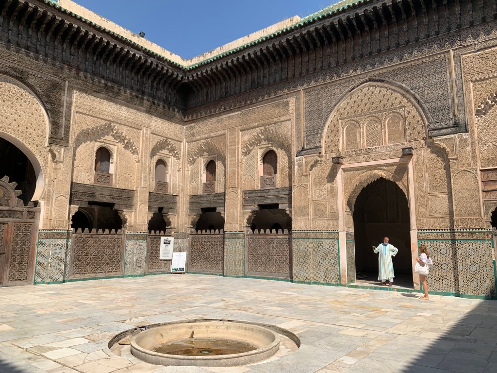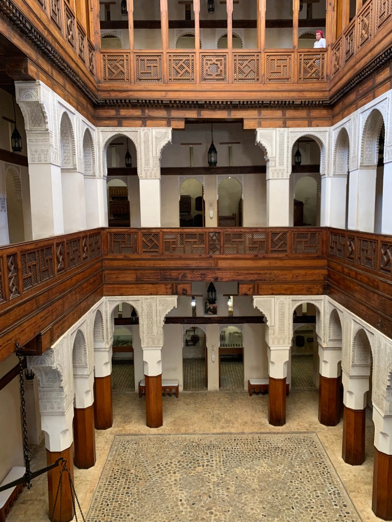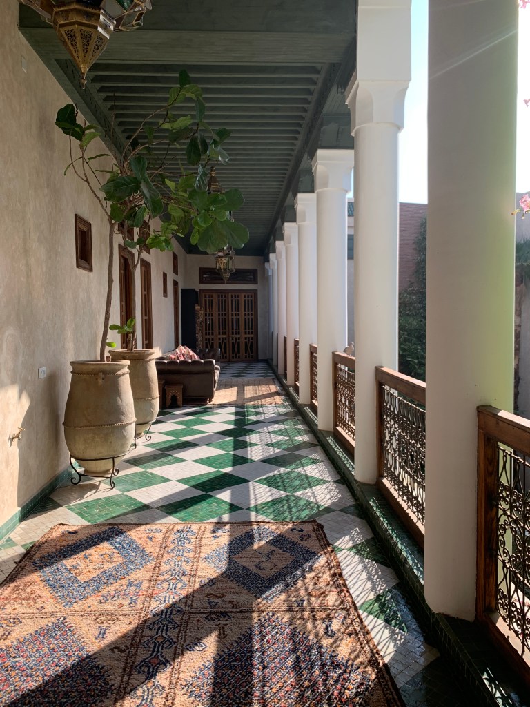 The Moroccan interiour courts are true havens of peace and we spent many a time just sitting on a bench enjoying the quiet, only disturbed by the sound of a water fountain or the songs of birds traveling from one courtyard to the next.