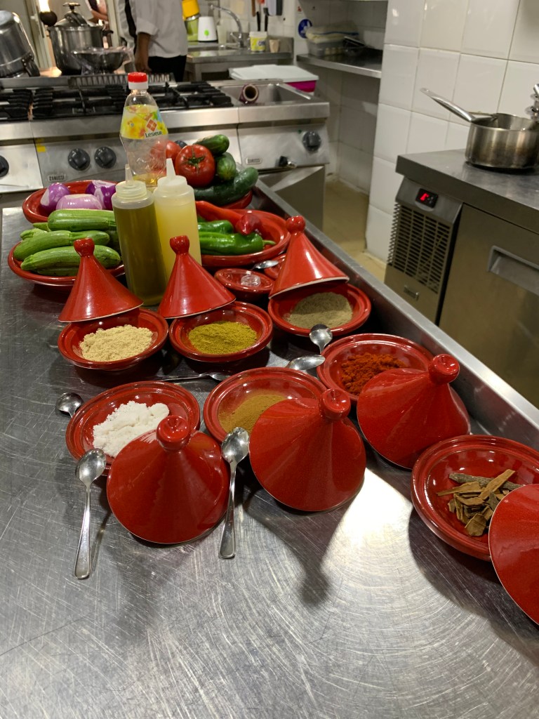 The Moroccans use turmeric, saffron, cumin, ginger, cinnamon, sweet paprika and (sparingly) hot chilli pepper, which are combined in endless variants, resulting in very colourful and tasty dishes, which we had the opportunity to learn how to prepare during a cooking class in Fès.