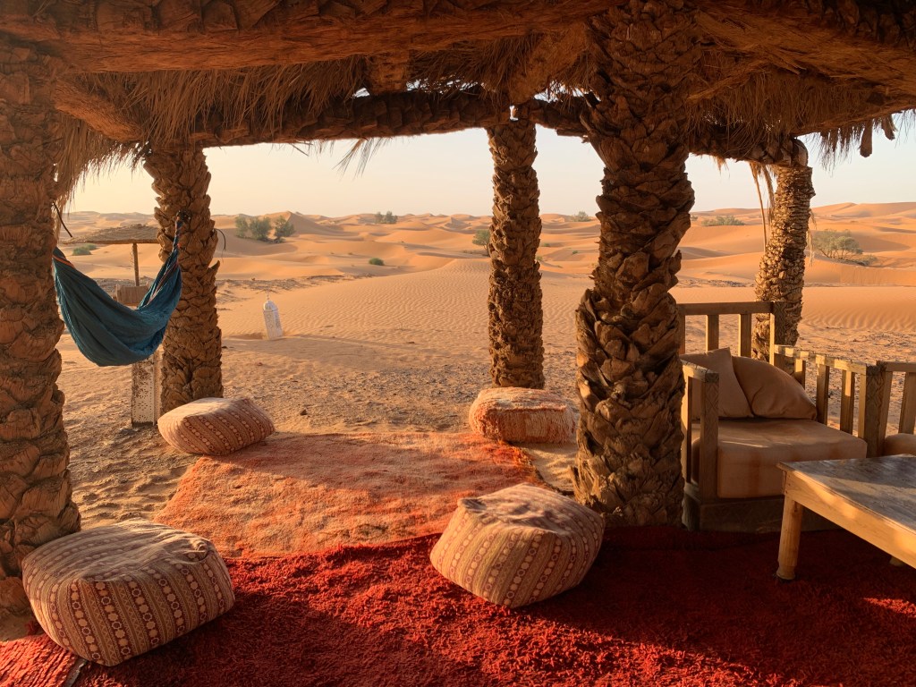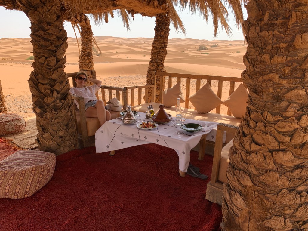 The Merzouga Luxury Desert Camp where we stayed for two nights is not really luxurious, but it’s beautifully located, right on the edge of the Sahara, and the staff are fabulous.