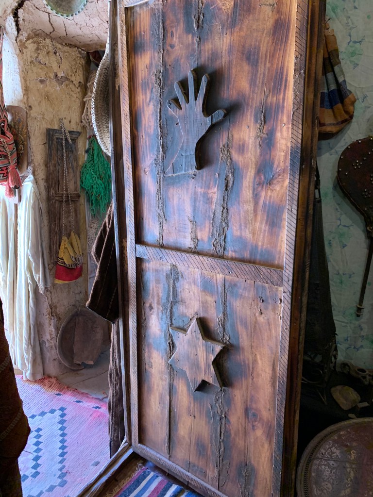 The Jews also brought to Morocco talismans and symbols, which gradually blended with the local iconography. We discovered true treasures at a 500-year-old synagogue in Ouarzazate, which we had the good fortune of visiting on our own and guided by the sole Jewish family left in this town.