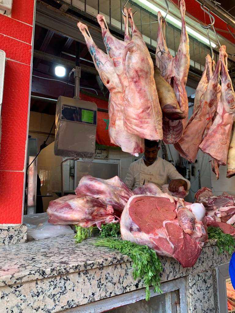 Tajines and couscous are always accompanied by a large variety of salads. Coriander, used as a fresh herb, is ubiquitous in Moroccan cuisine, as is flat-leaved parsley. The markets, even in the most distant villages, are filled with fresh vegetables and unsual meat cuts (including bulls balls), for which Morocco is famous.