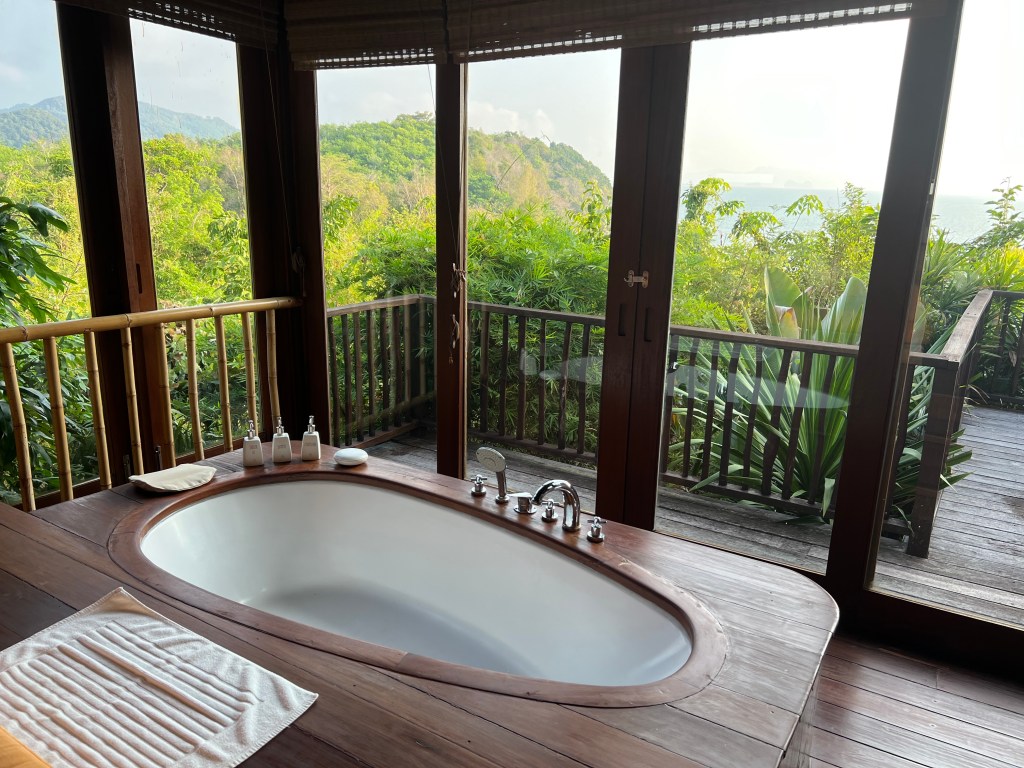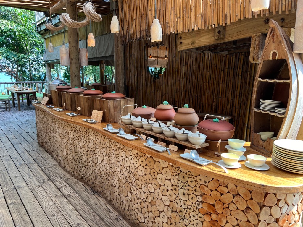 We stayed at the Six Senses. While we really appreciated the incredibly attentive staff, the very delicious farm to table food and the spectacular views from the Hilltop Restaurant, we would probably not come back to this hotel. Although the property is very beautiful and the surrounding nature an absolute delight, there are few possibilities to swim (there is only one pool, which is built in a way that makes it difficult to swim lengthwise) and the hotel’s beach is tiny. The rest of the island is pleasant and has a soothing relaxed vibe, but it lacks beautiful long beaches. March and April is also the season of the jellyfish. With waters teeming with jellyfish, it was more like a scene from an aquatic jelly disco than an invitation to swim because nobody wants to risk a Jurasian jellyfish performing salsa steps in their swimsuit. And so, we discovered, Kho Yao Noi’s shores are less about swimming and more about perfecting our sandcastle skills.