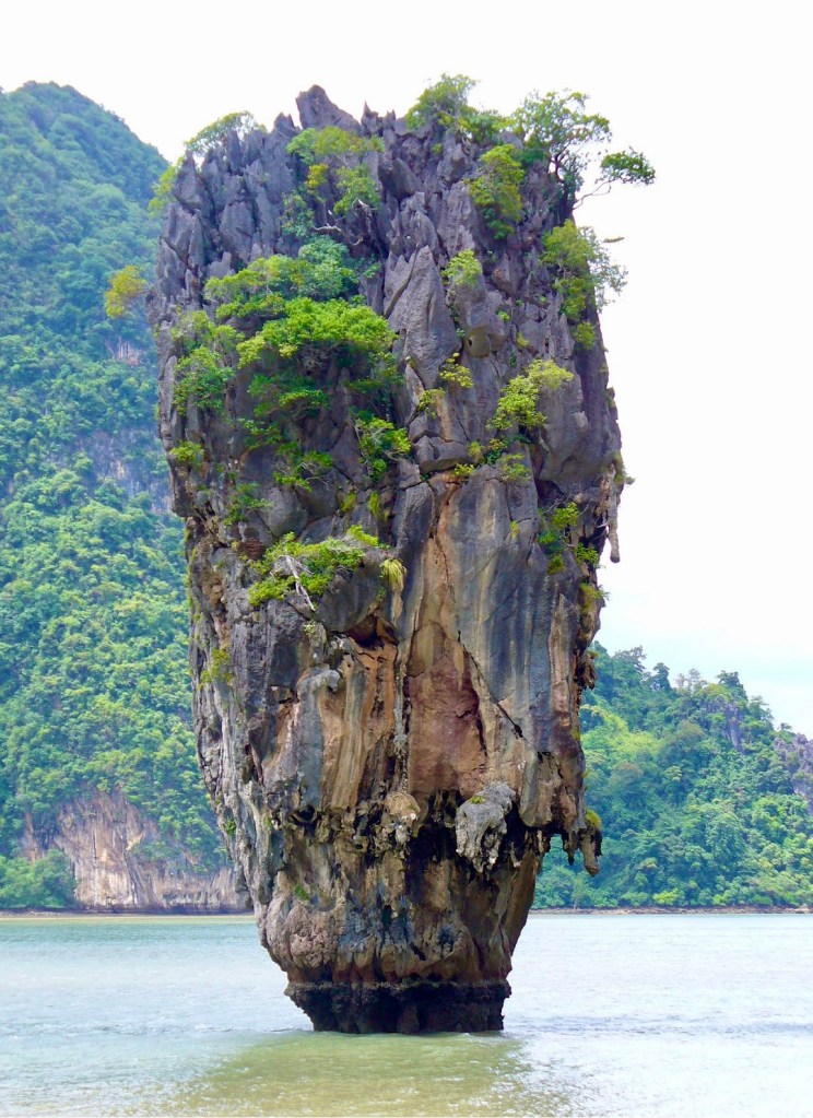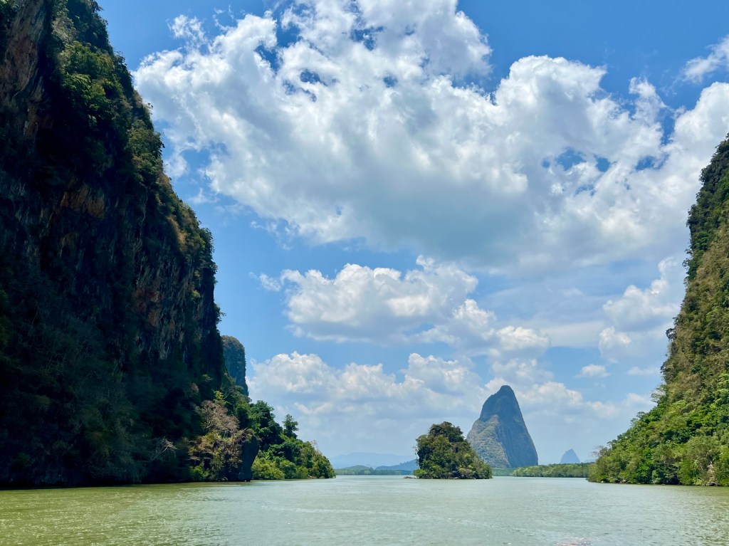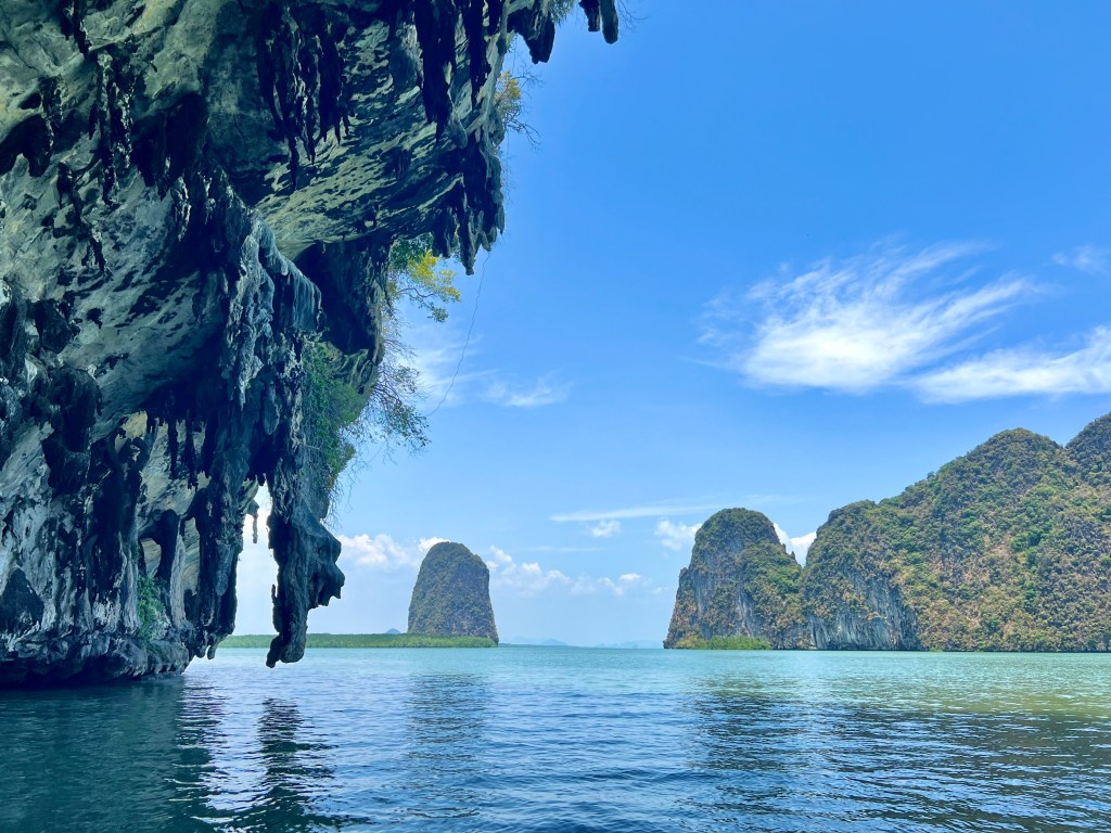 Many millions of years ago, Phang Nga Bay was part of a large coral reef system, the remnants of which formed the islands we see today. These limestone formations were originally part of the seabed, which was lifted above sea level by tectonic movements. Over time, wind, water currents, and waves have sculpted the islands into their current shapes. One of the most famous of these formations is Ko Tapu, known as James Bond Island, which was featured in the 1974 James Bond movie “The Man with the Golden Gun.”