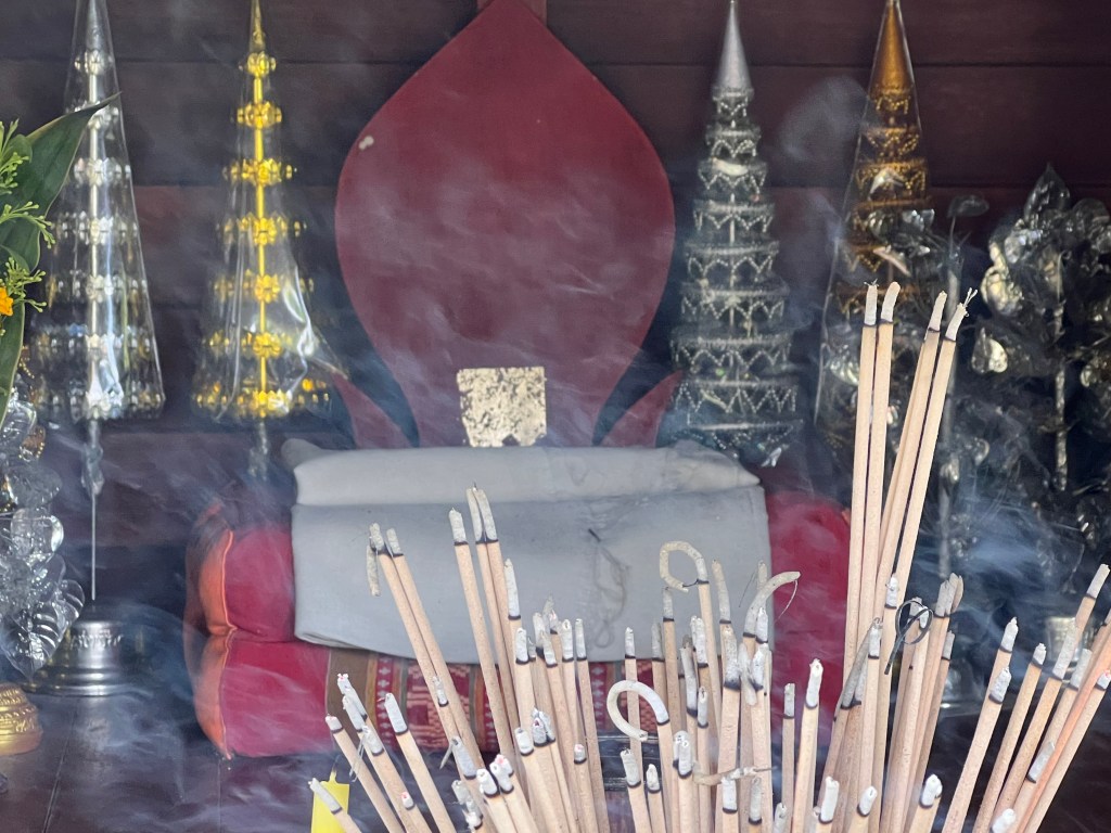 Some of the deities, like the one below which represents “the gods of the area”, will have no visual representation, so their shrine has en empty throne.