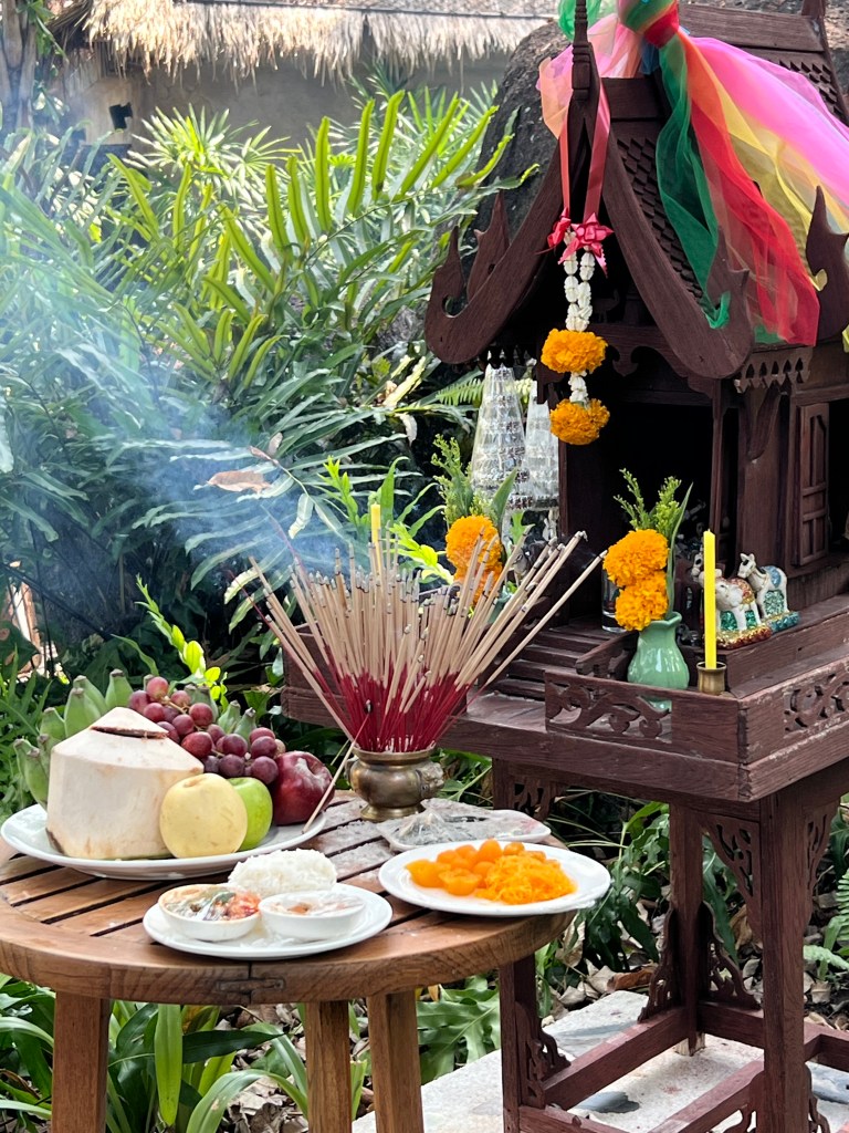 But the ever-prudent Thais, also make sure deities from other countries are honoured, especially those from India. One of the shrines at Kamalaya is devoted to Ganesha, widely revered as the remover of obstacles, the patron of arts and sciences, and the deva of intellect and wisdom. Traditionally, Ganesha is also invoked at the beginning of any new venture or journey, as it is believed that he will clear the path of any potential difficulties. The offerings placed before the statue, which typically include sweets, fruits, and incense, are a sign of devotion and are meant to honor Ganesha.