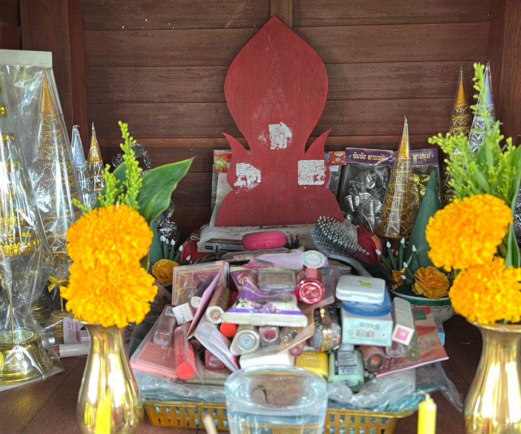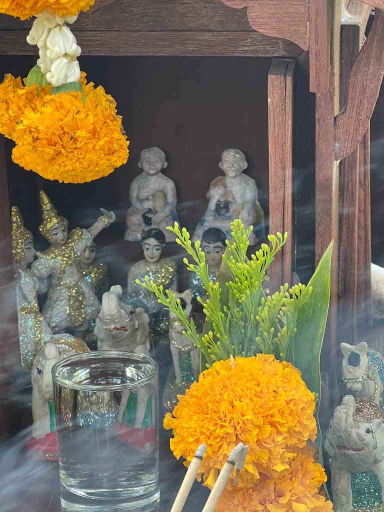 The following shrine is devoted to “angels”. Since they have no definitive form (and the number of them is unknown), there is, like in the preceding shrine, no statue. This is a popular shrine among the staff at Kamalaya – the angels appear to have awarded many of their wishes which, as you can see, has been reciprocated by the staff with an above-average number of presents!