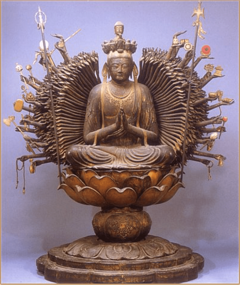 In Japanese Buddhist temples, you are likely to see, in addition to the historical and Amida Buddha, images of Bodhisattvas such as Kannon (representing compassion), Jizo (revered as the protector of children, travelers, and those who are suffering), and Fugen (the Bodhisattva associated with practice and meditation). Other deities and figures you might find are Arhats (these enlightened disciples of the Buddha are often depicted in Zen temples, symbolising the ideal of reaching Nirvana), Fudo Myoo (a wrathful deity associated with esoteric Buddhism) and Seven Lucky Gods (although not purely Buddhist, these figures are commonly found in Japanese temples and shrines, representing various aspects of good fortune and protection).