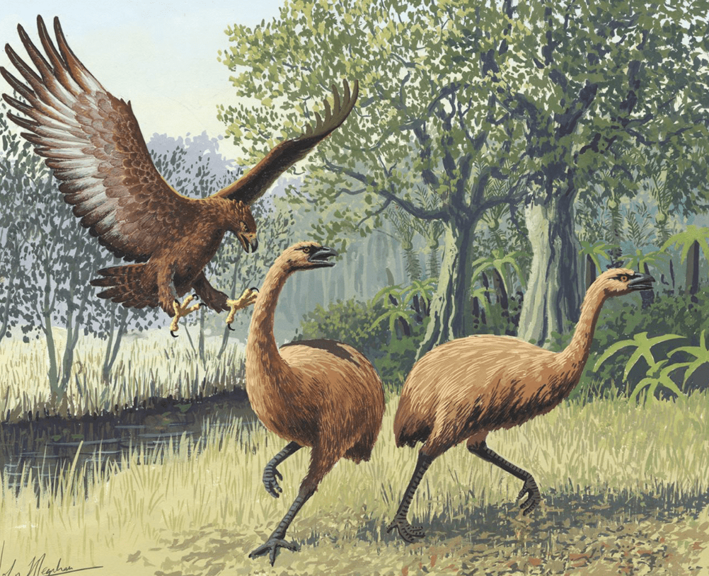 As a consequence of the disappearance of these birds, other species, like the Haast Eagle (the largest eagle ever to have existed) died out too.