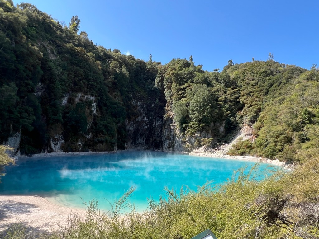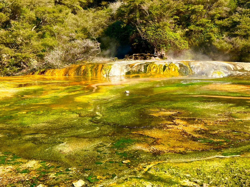 Lake Rotorua was formed by a massive volcanic eruption around 240,000 years ago. Its volcanic origins contribute to its unique landscape, with volcanic hills and geothermal hot springs surrounding the lake. We loved the peaceful sights of the large lake and spent a very relaxing afternoon at the Waiariki theothermal baths, which included no less than three types of saunas, heated pools with great lakeviews, followed by an intensive mud bath. We left the place floating on a cloud!