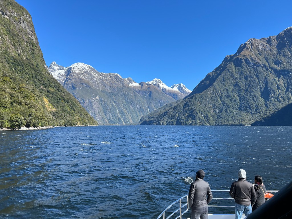 The Milford Sound is in fact a fjord, one of the many that crowd the southwestern tip of New Zealand. We visited it on a day with bright blue skies and were lucky that it had rained the days before. Apparently it’s only after a rainfall that you see as many waterfalls (we saw hundreds) – without rain there are only two or three (which are still impressive). We were thrilled to see very rare Blue Penguins happily going about their life in the knowledge that they are undisturbed by humans. It was a bit windy and cold but, wow, the spectacular views of such majestic, unperturbed nature made us not even notice it.