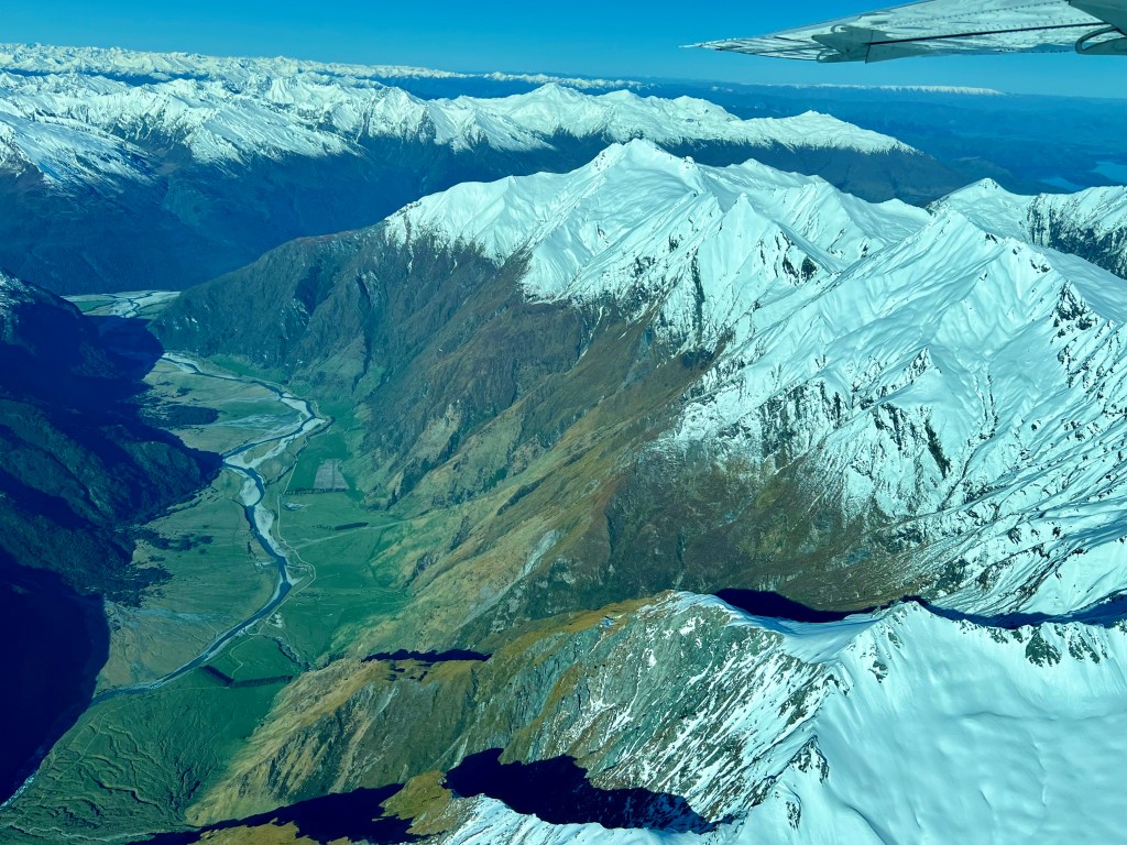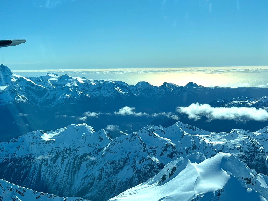 As we were crossing what New Zealanders call “the Southern Alps”, we initially thought that they looked the same as the European Alps. But then we looked closer and saw that not a single building or road was visible in the many valleys we crossed. And then the magnificent shoreline appeared, the blue immense ocean, and again not a human in sight. This is not the Alps we have always known!