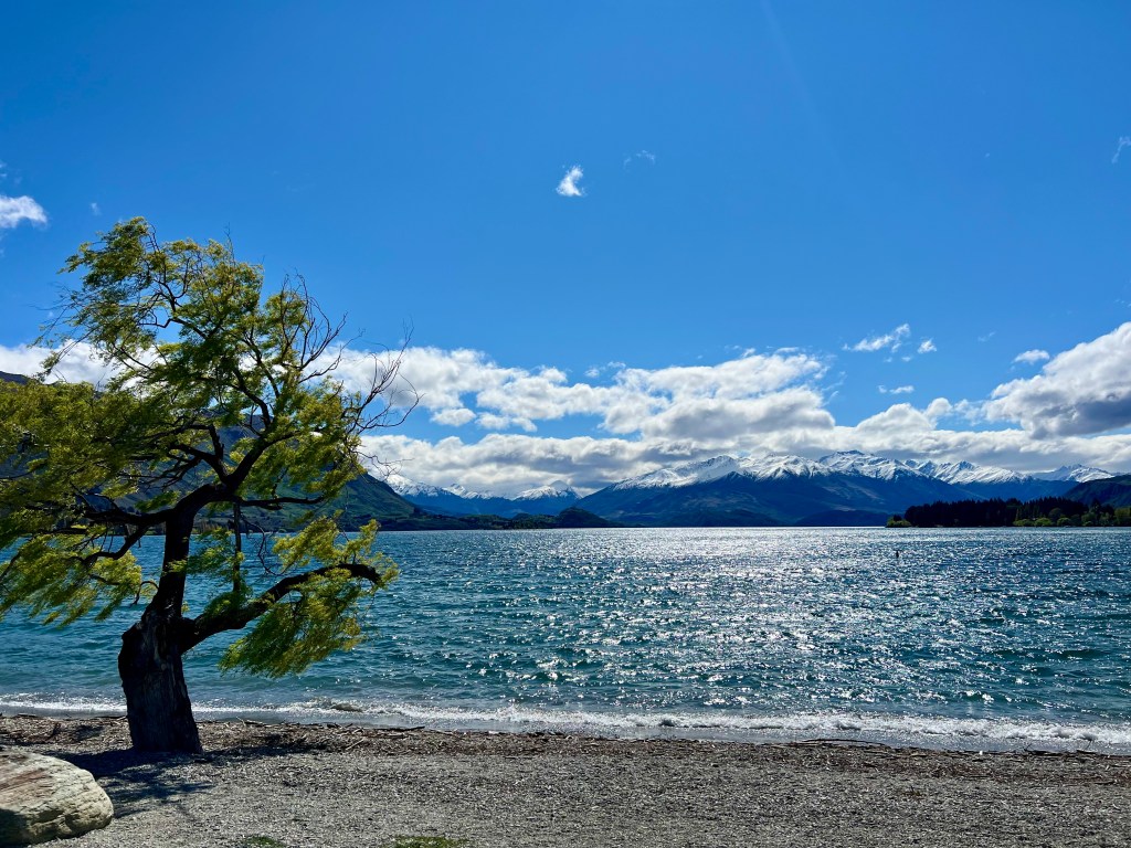 Lake Wataka, about an hour away from Queenstown, has a hip vibe and looks very much like Bariloche in Argentina. The walkways by the sea have been taken great care of, with many benches and large flat rocks an invitation to picnic. Everyone here eats fish and chips, we wondered why any other food was offered in the many lakeside restaurant.