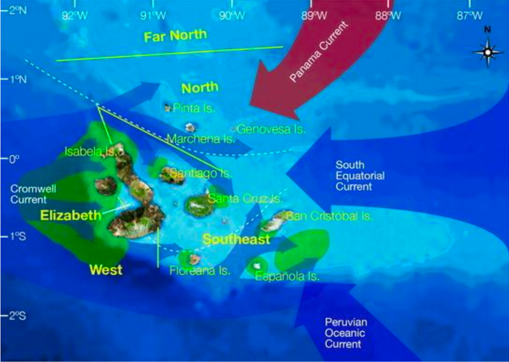 The explanation has to do with its unique location: it is very isolated and at the centre of three cold and warm ocean currents (Humboldt, Cromwell, and Panama), which means that in a very small geographical area, vastly different habitats are found.