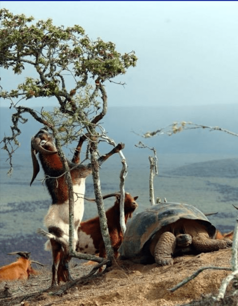 Nevertheless, introduced species (goats, rats, cats and dogs) did ravage part of Galápagos. Some of these were eliminated in the last few decades, but some remain. Even today, visitors are struck by the presence of dogs and cows in some (tightly controlled) areas, which have nothing to do with the local ecosystem.