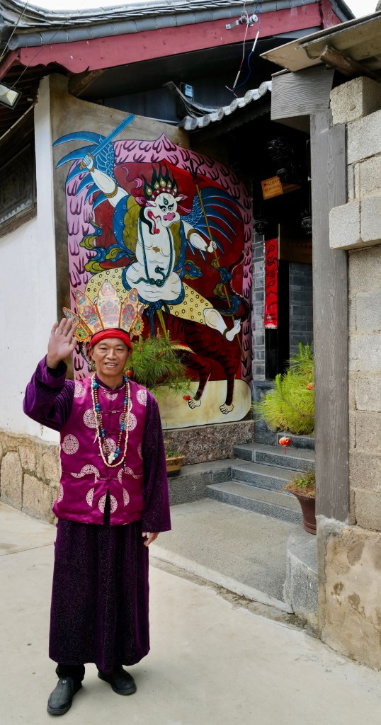 We visited the home of Mr. He, a Dongba priest, who is the 34th generation in his family to carry on this sacred role. The Dongba are not just religious figures but also teachers, doctors, and spiritual guides for the Naxi community. Unlike the Bimo religion of the Yi people, which we explored the previous day, the Dongba religion worships a pantheon of gods, including mountain gods, river gods, and the revered Jade Dragon Snow Mountain, known as Bim.