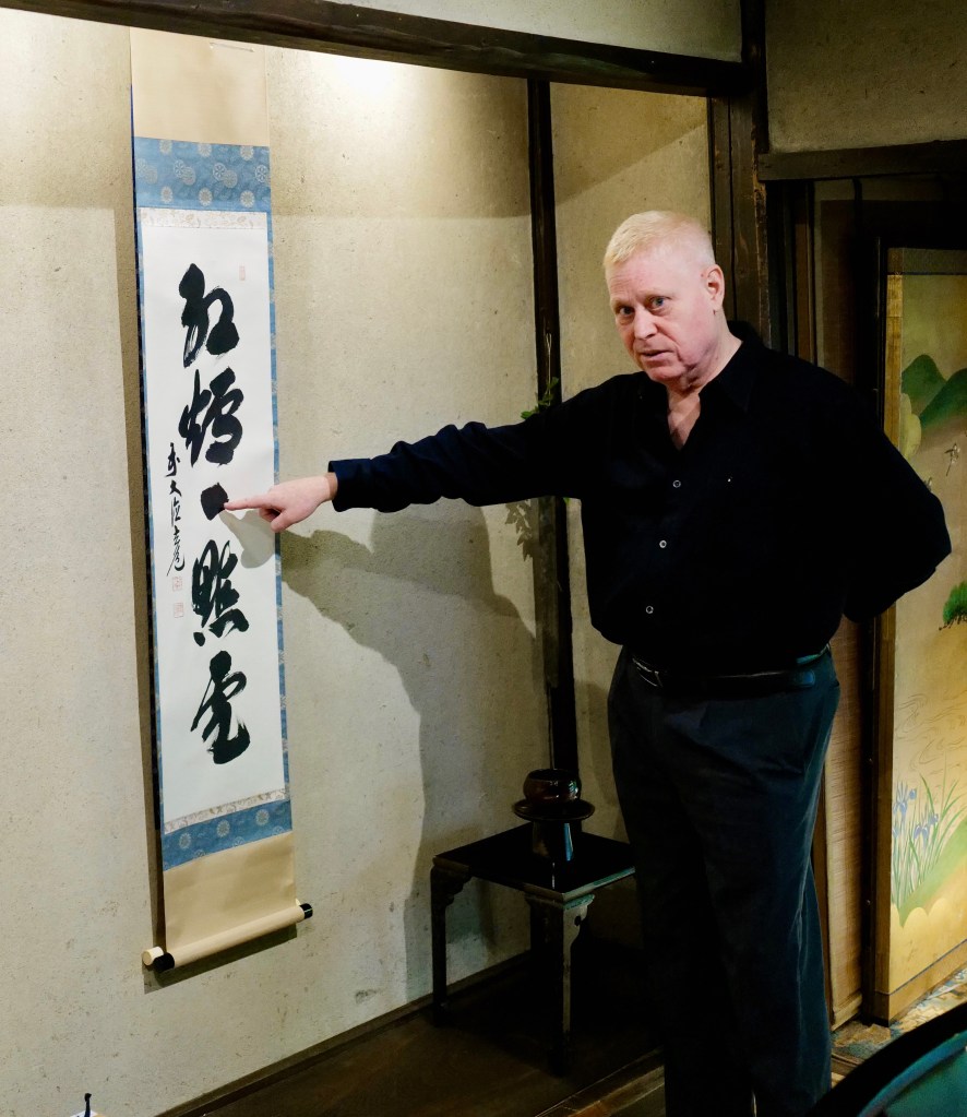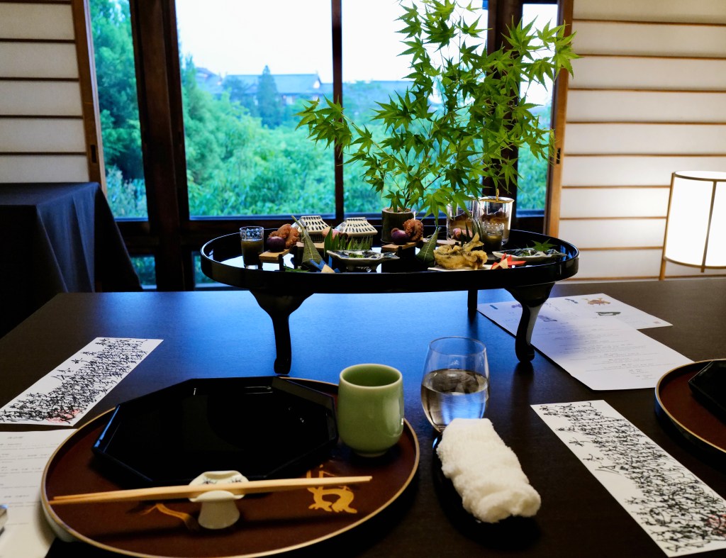 We participated in a rare event held at the home Alex Kerr in Kameoka, about 30 minutes from Kyoto. The setting was perfect for an intimate dinner, followed by magnificent dancing by a geisha. and a maiko. An older geisha played music to accompany the dancing. It was a beautiful evening.