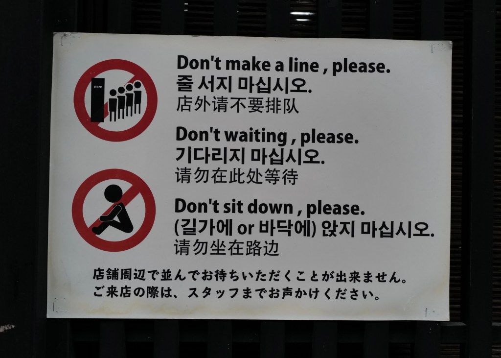 Wherever you go in Japan, you are faced with signs loudly telling you what not to do. Sometimes there are so many signs, that they get in the way of you actually seeing anything. We collected images from over 200 signposts we came across and put them in a file we labelled “Don’t”. Below we show you only the most salient examples.
