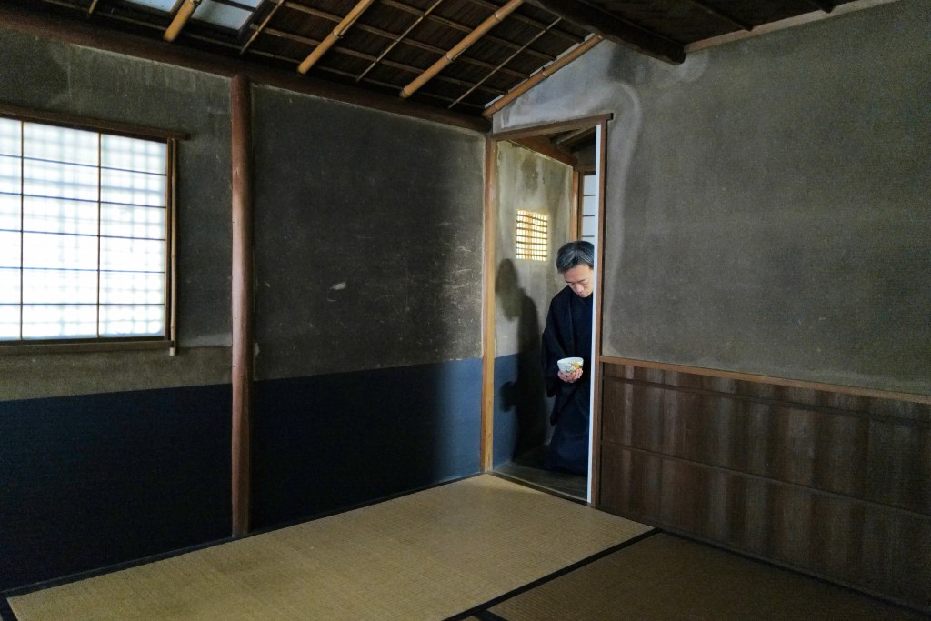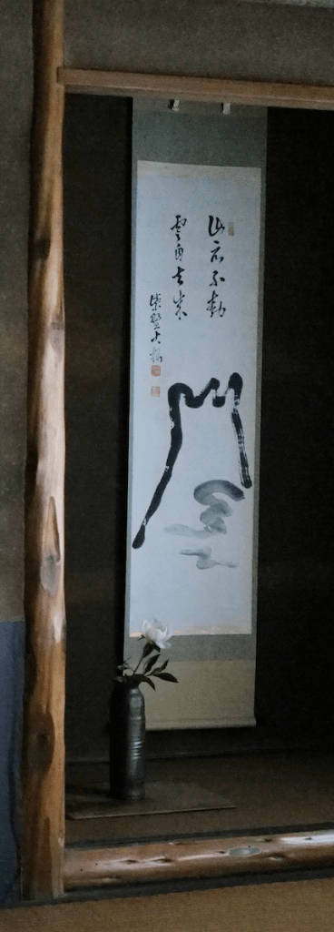 The setting takes place in a purpose-built tea room or chashitsu, often reached by a simple garden path (roji) symbolising the journey inward. Everything from the tea bowl (chawan) to the whisk (chasen) and kettle (kama) is carefully chosen and admired in the Tea Ceremony. It varies by season and by the theme that the Tea Master wishes to instil into a particular ceremony. Every element—the scroll, the flowers, the sweets, even the choice of tea—is selected to reflected the season and a particular message that the Tea Master wishes to transmit to the people he’s invited.
