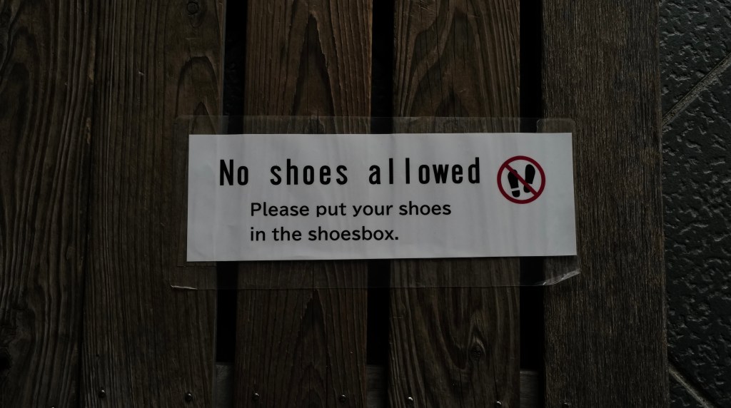 In many places it’s not just about removing your shoes before entering somewhere, it’s also about which slippers you should be wearing once inside. Often there are three pairs available, depending on the surface you are stepping on, plus a fourth (no slippers, but no barefoot feet either, you need socks for these surfaces). You better not get it wrong otherwise you will easily be shouted at. Here is a rundown: