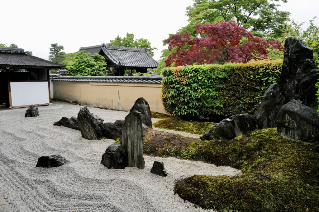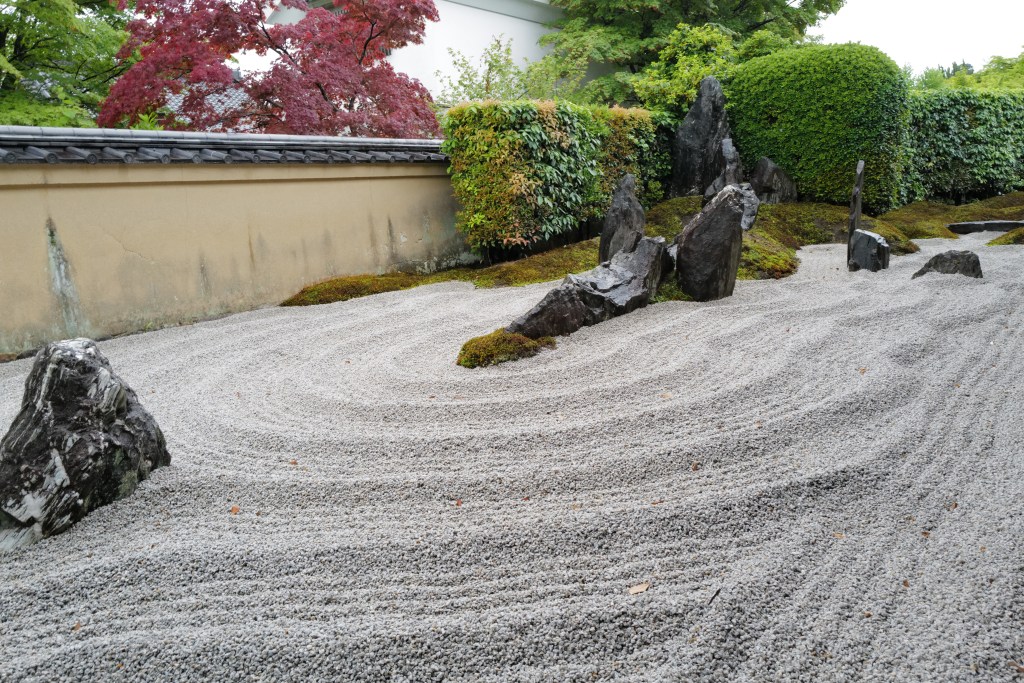 - Karesansui: Dry landscape or Zen garden—minimalist, with rocks and gravel raked to suggest water. Used for meditation.