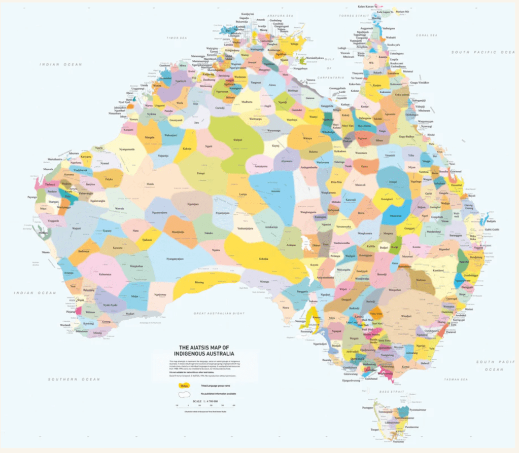 Examples of paths that were trodden by the ancient Aboriginal people as they moved across the continent of what is now Australia. As recently as 12,000 years ago you could walk from the northernmost part of Papua New Guinea to the southernmost part of Tasmania, a continent we now refer to as Sahul. What you see in this map are walking (and probably also trading) pathways encapsulated in Songlines.